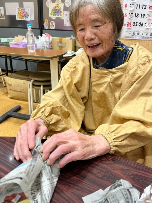 当日は入所者様にお手伝い頂きサツマイモを濡らした新聞紙とアルミホイルに包んで沢山準備(`・ω・´)b